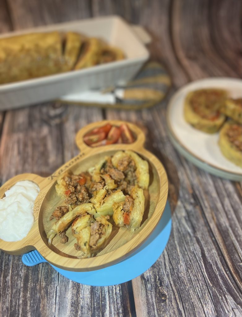 *Ако ще предлагате от рулото на малки деца е за предпочитане да пропуснете солта и пипера, или да използвате съвсем минимални количества. Това, което направих аз, е да отделя малкат част от плънката и от сместа за блата, след което да овкуся останалото със сол и черен пипер.